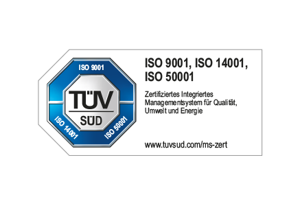 TÜV SÜD regularly certifies our management systems: quality to ISO 9001, environmental to ISO 14001, and energy to ISO 50001. ISO 9001 ensures efficient, well-designed workflows for developing, producing and selling kitchens. ISO 14001 improves environmental performance, while ISO 50001 boosts energy efficiency and reduces CO2 emissions.