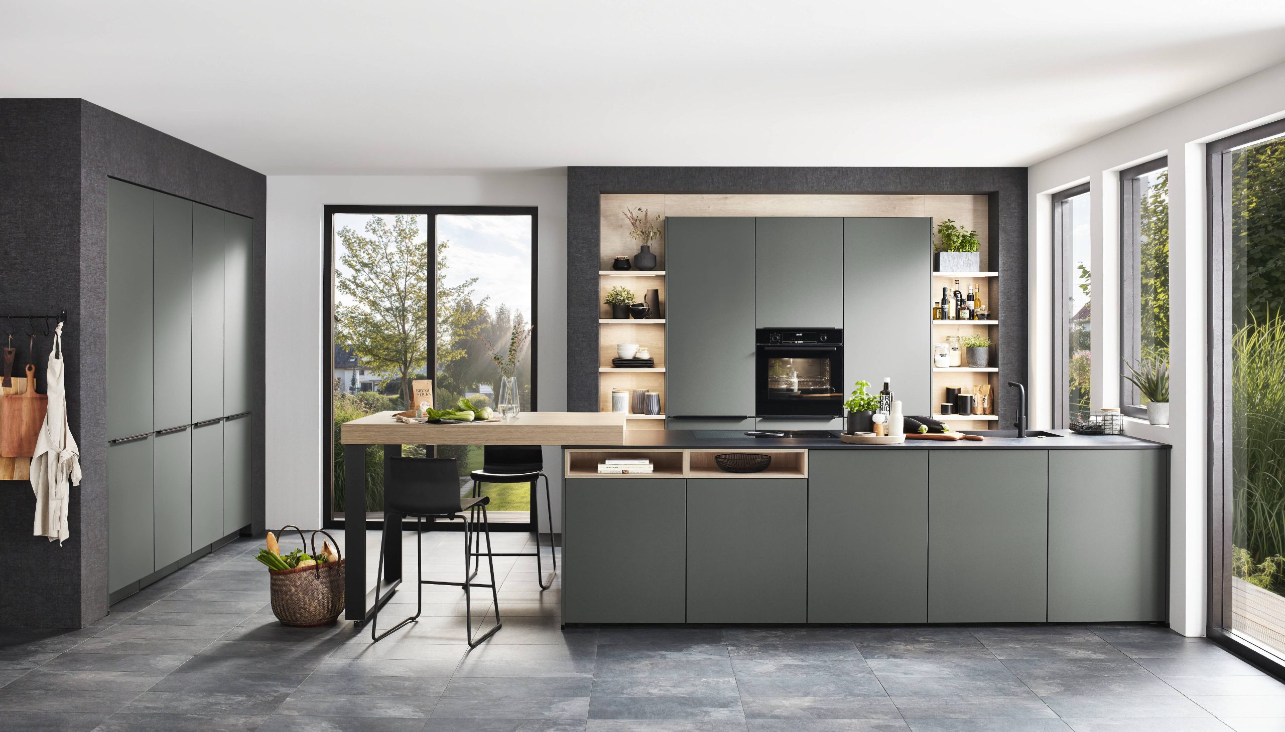 Smart and beautiful in soft green, this U-shaped kitchen is more than just a style statement. It’s designed with intricate details, including a smart access door that blends perfectly with the cabinets and leads to the utility room. It’s practical and makes everyday tasks so much more easier.