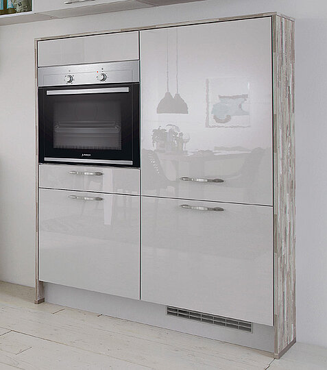 Modularly designed kitchens are made with on-trend lacquered laminate, and offer flexible design options for both small and large floor plans. The result is an informal kitchen architecture with a structured room concept and well-placed functionality and storage space. Accents in the Maracaibo light décor add a fresh, modern touch that lends this kitchen its modern character.