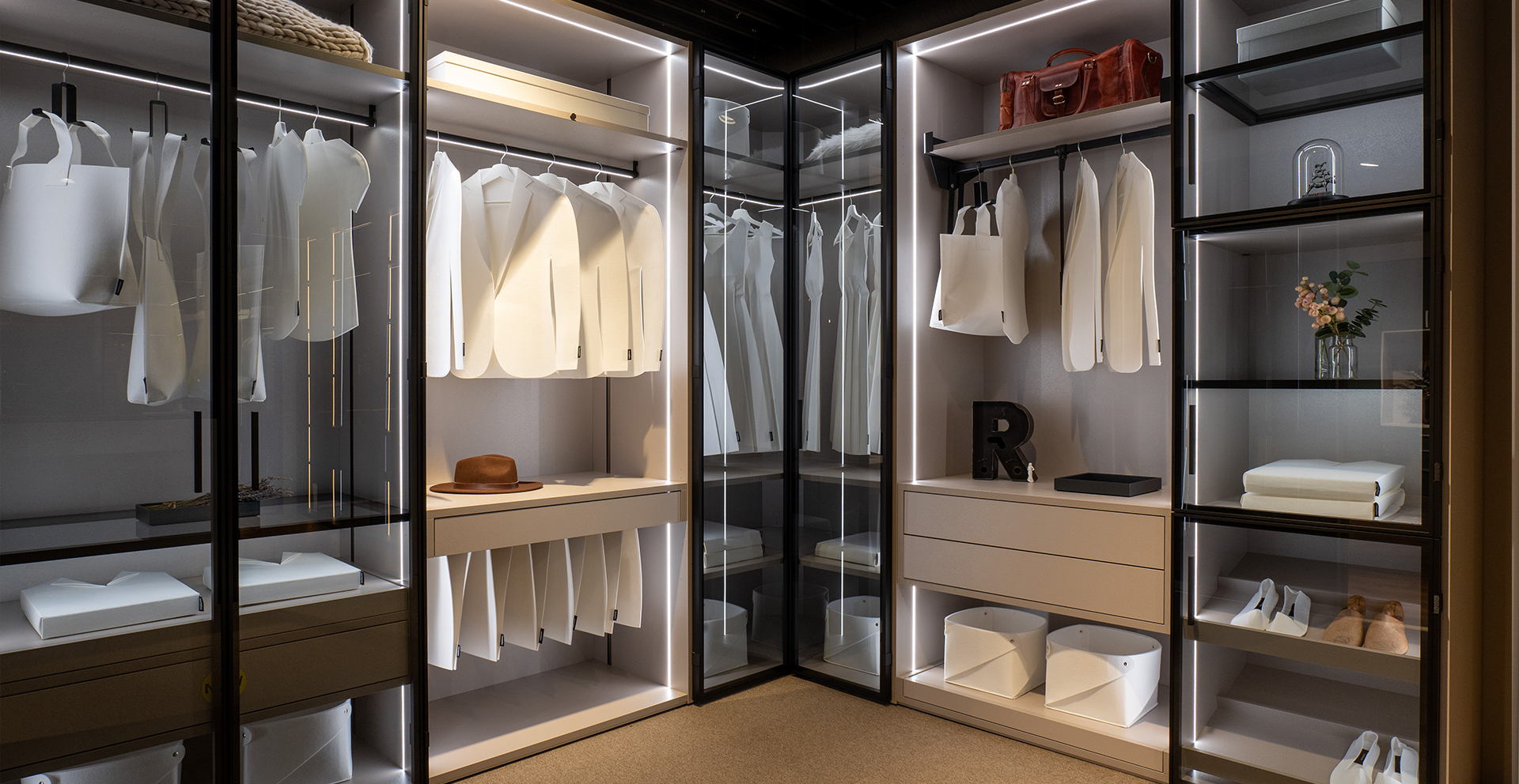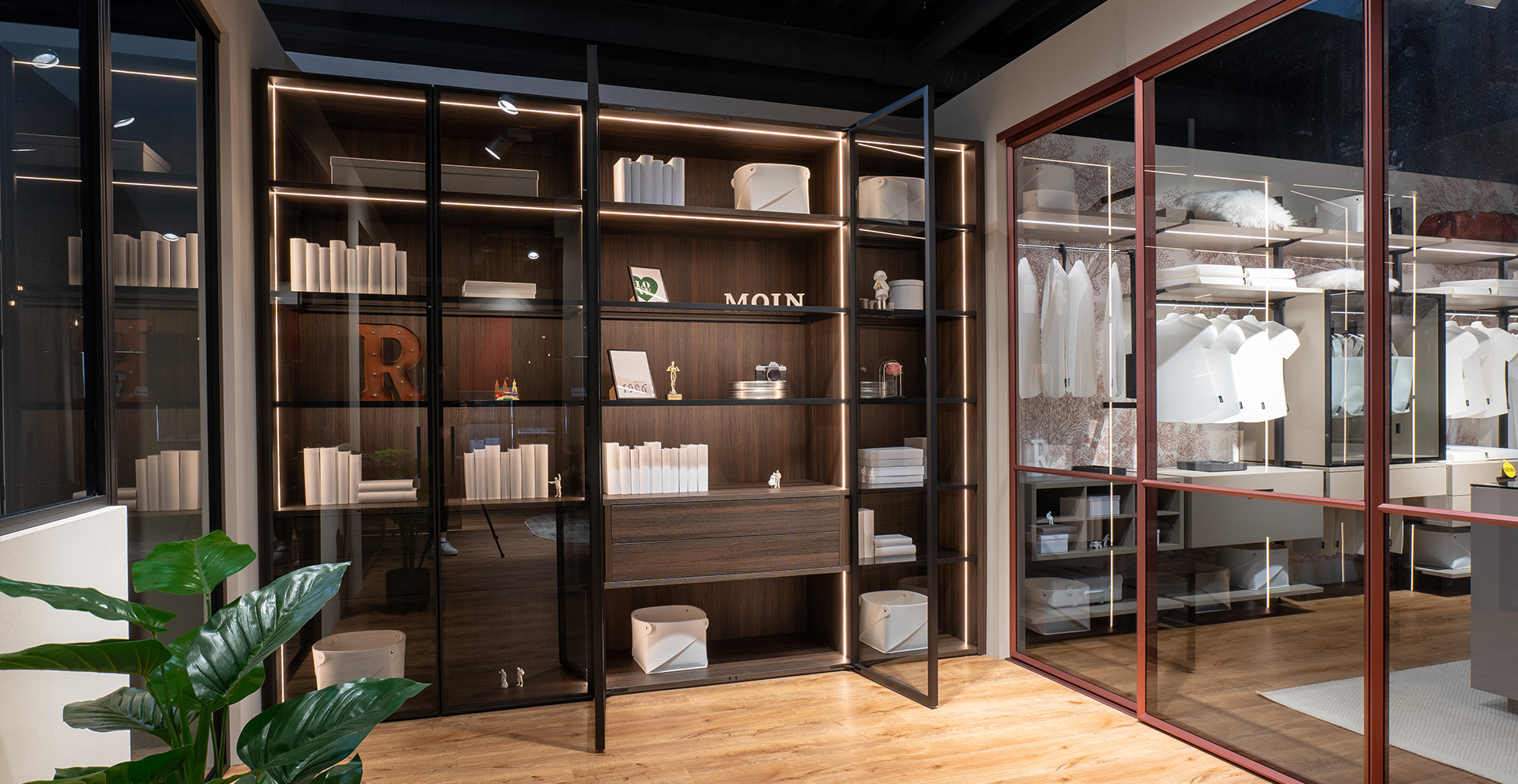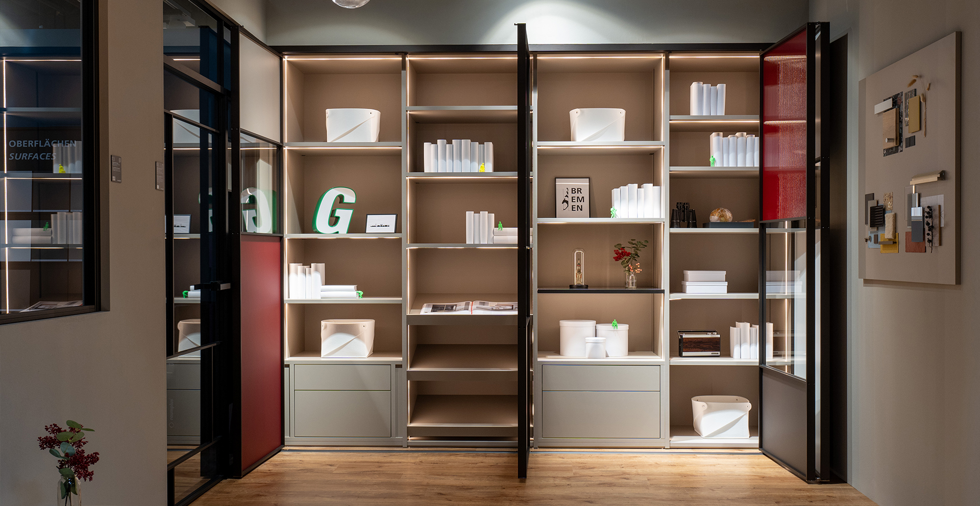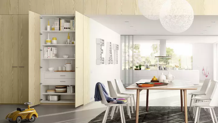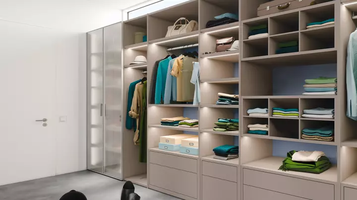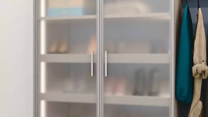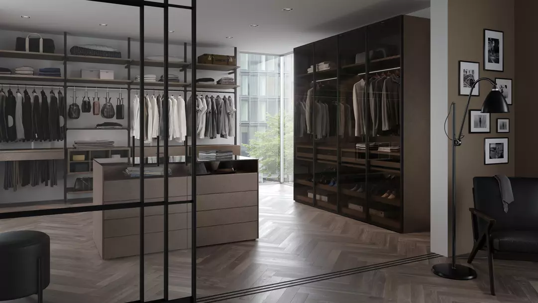 If you choose a hinge-door wardrobe, you can pick between wooden doors and aluminium frame hinge doors. nobilia- Raumplus offers three profiles for aluminium frame hinge doors, with many panel options. You can shape the doors to match the look you want. Hinge-door wardrobes bring many small joys. One clear joy is the full view when both doors open. You see everything at once, with nothing hidden behind a panel.