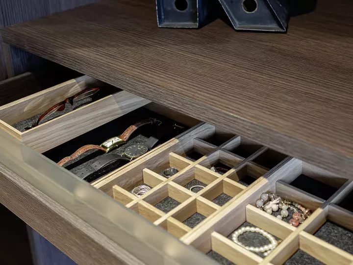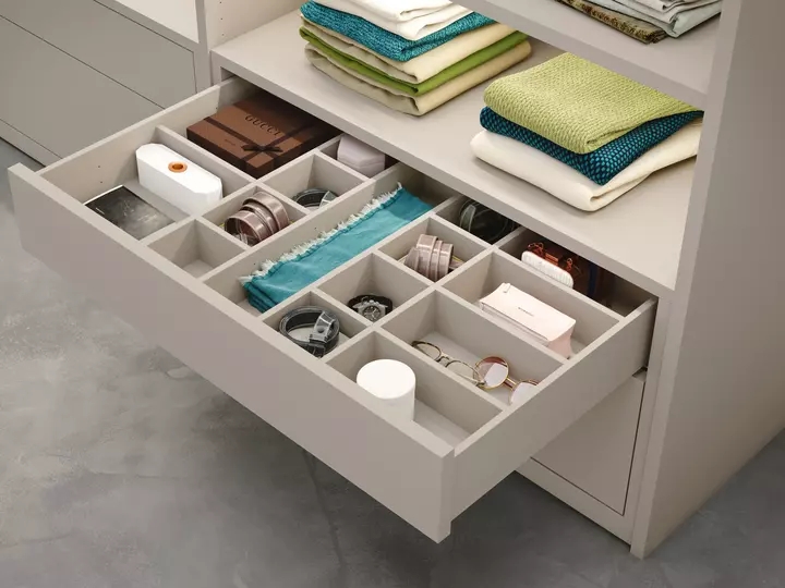You set the look of your wardrobe with the door panel, the frame colour and the interior system. Now the small comforts finish the job. These nobilia- Raumplus helpers let you shape the wardrobe to your needs. They make daily use simple, smooth and pleasant. Below are a few ideas.