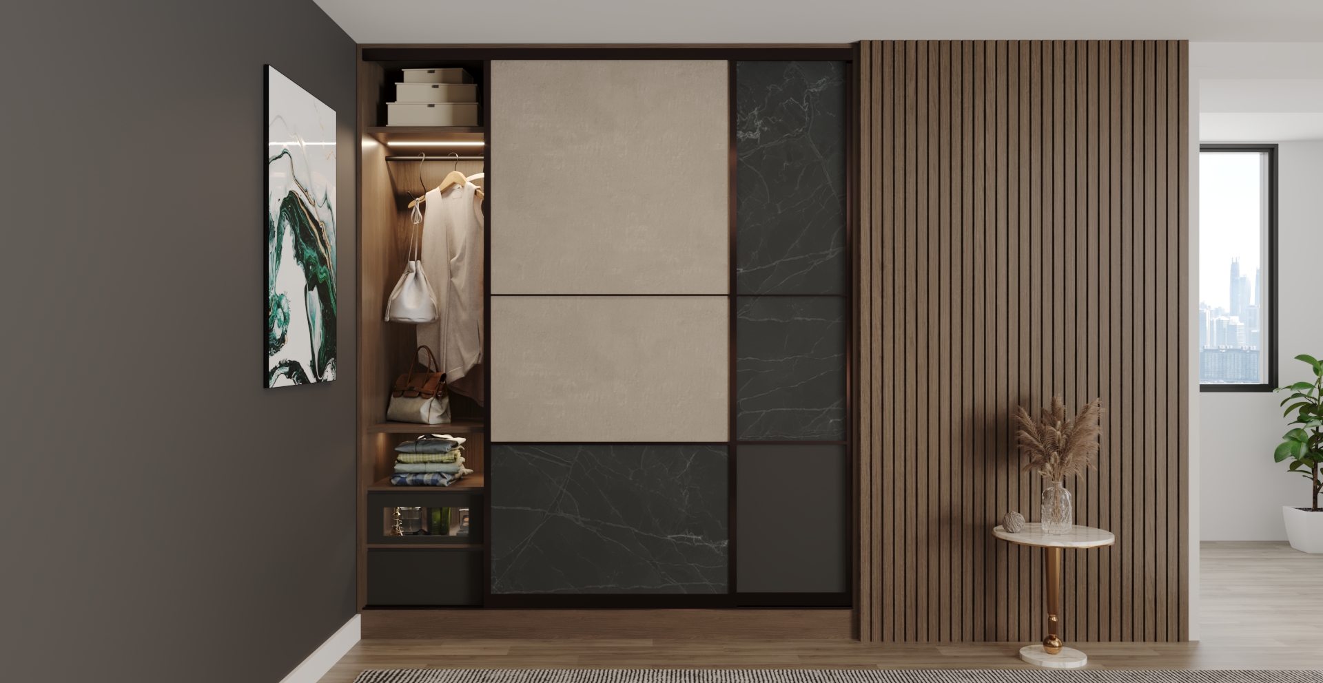 Sliding doors make small corners useful. They turn tight spots into neat storage. They hide the inside view and keep the room calm. The doors glide past each other on rails, so they need no space to swing open. Unlike hinge or folding doors, they stay close to the wall and never push into the room.