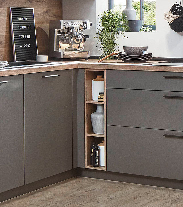 Dark classic tones give the kitchen a rich, confident look. Soft highlights and well-chosen accessories add depth and charm. The amalgamation creates an urban feel that looks polished without trying too hard. It feels like a space made for daily use, yet special every time you step in.